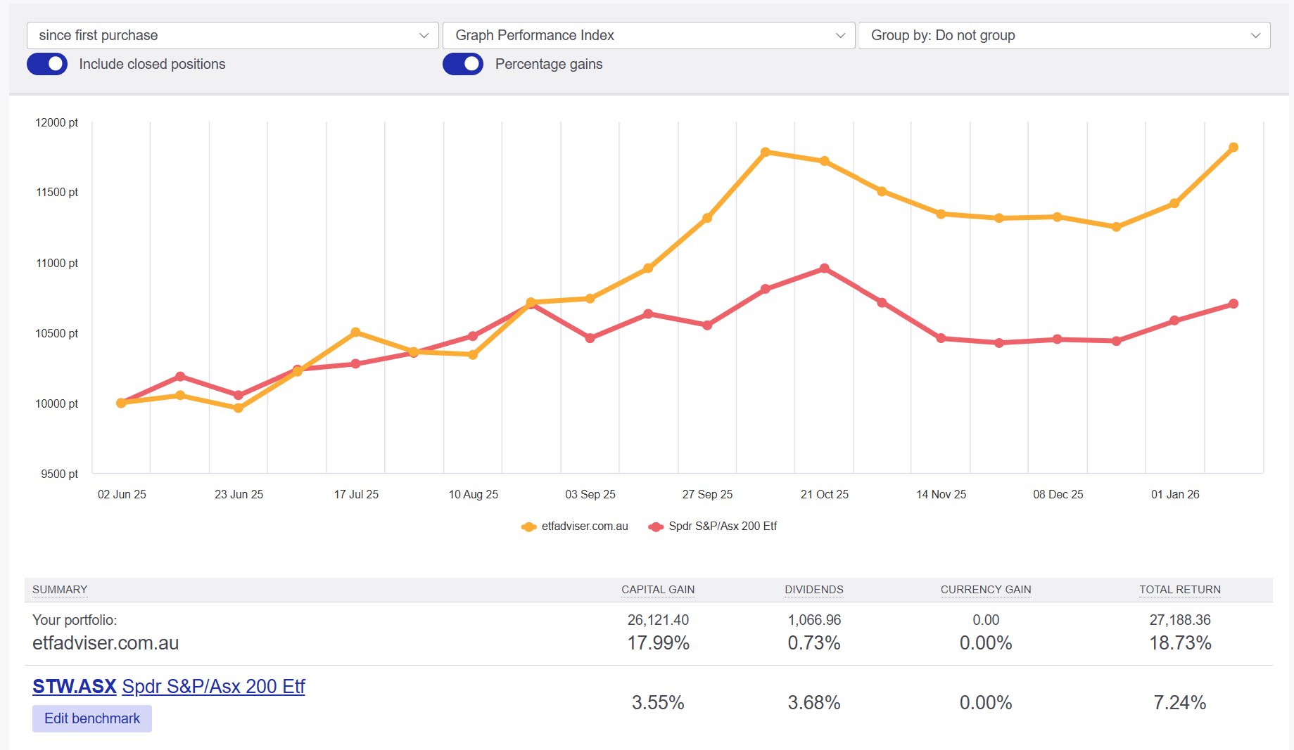 Model PortfoliosSwitch - Best Ideas Model PortfolioWe switched into a higher momentum stock.etfadviser.com.auJan 13, 2026∙ Paid2Share📌 Performance Since InceptionWe are solidly outperforming the Aussie benchmark ASX200 index.Here are today’s trades:This post is for paid subscribersSubscribeAlready a paid subscriber? Sign in
